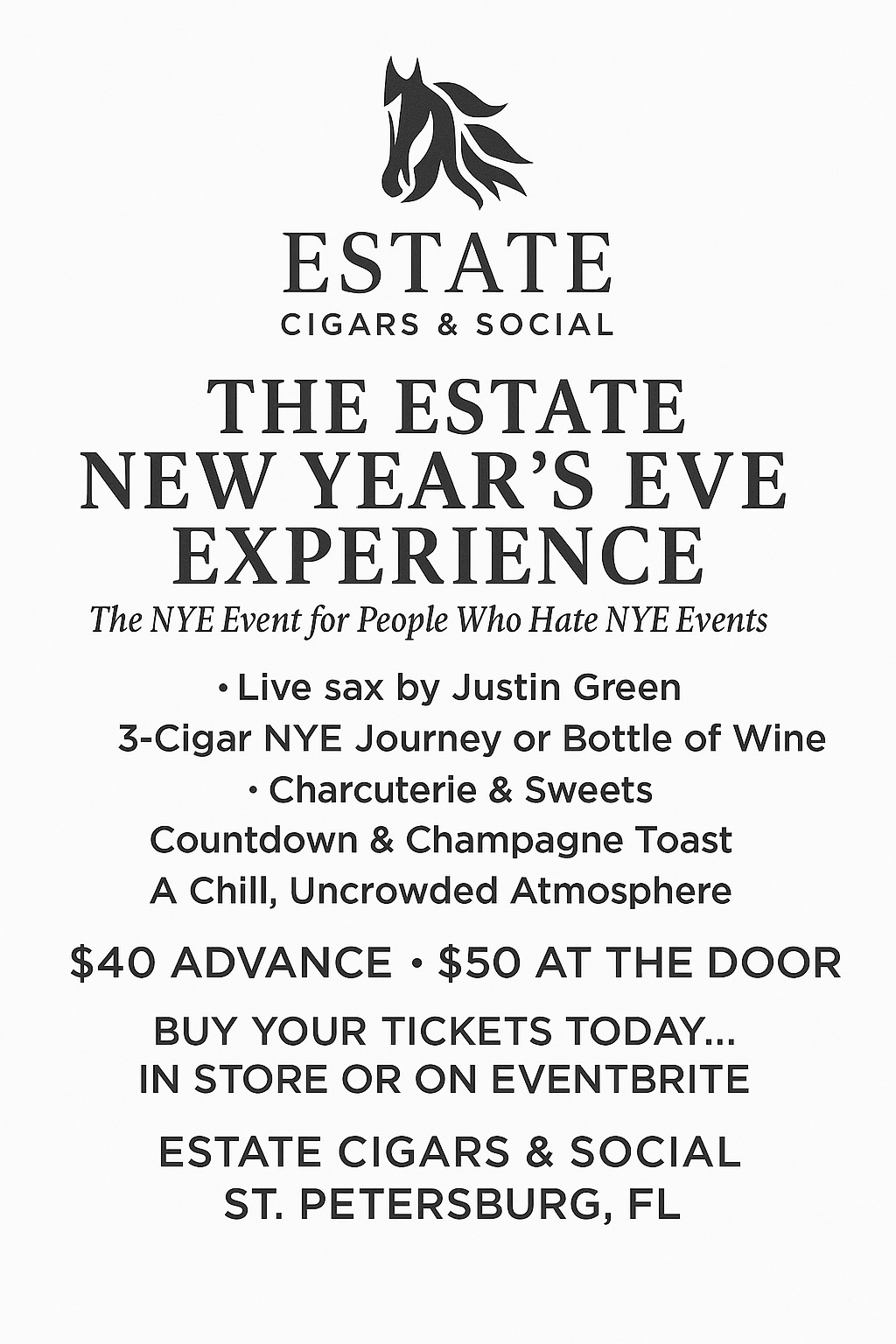 Buy tickets here: https://www.eventbrite.com/e/the-estate-cigars-social-new-years-eve-experience-tickets-1977141624823?utm_experiment=test_share_listing&aff=ebdsshios